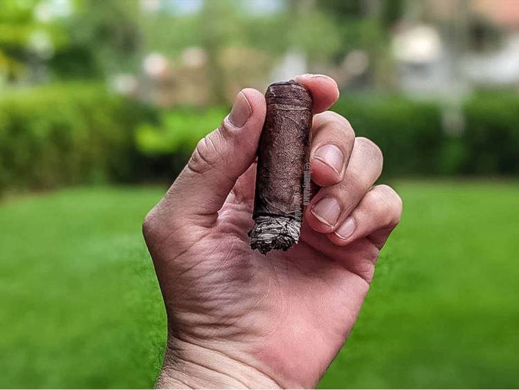 En el último tercio se pierden las notas dulces del durazno, aunque sigue teniendo ese matiz y lo calificaría más como un sabor de orejones de durazno, mientras que esos sabores de pimienta, madera y cuero siguen presentes, y la canela está muy lejana. No hay mucho más en términos de sabores y la fortaleza disminuye a media, mientras que la intensidad se mantiene en media-alta. Me toma una hora y 25 minutos fumar el Fine Ash Corojo, hasta el punto que aún quedaba algo de cigarro pero no me parecía que ameritaba mantenerlo.