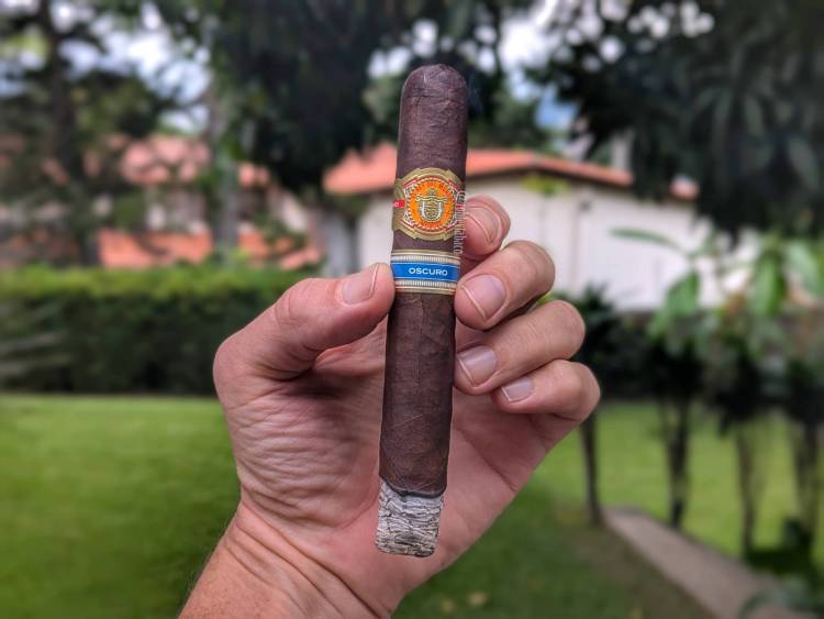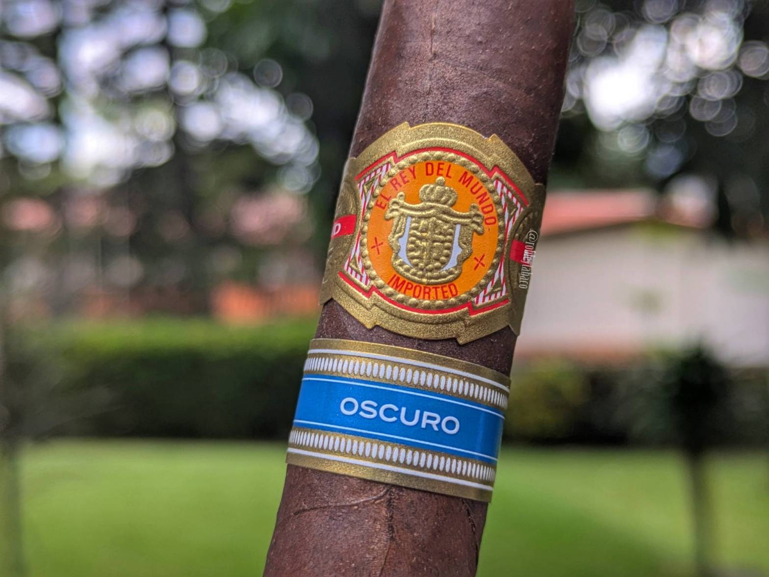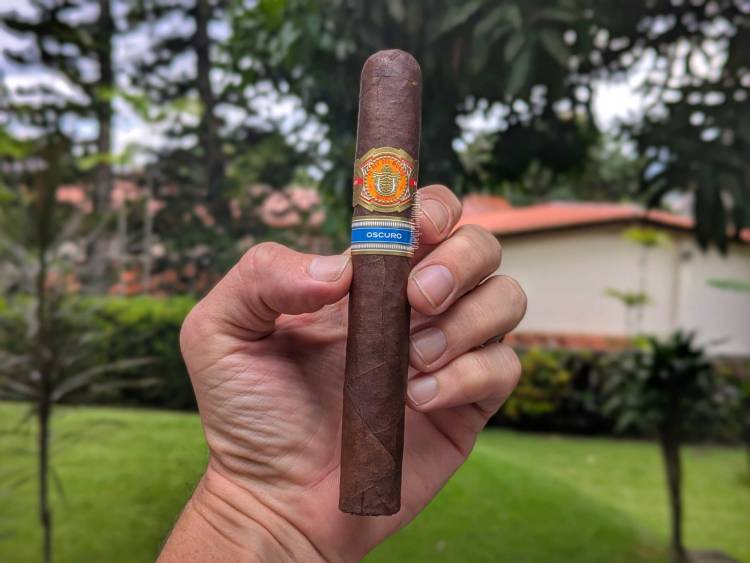 Hay cigarros con los que siempre me va bien, y hay cigarros con los que no siempre me va bien. Pero también hay cigarros con los que siempre me ha ido mal. El Rey del Mundo con origen hondureño es uno de esos. De su versión he probado uno solo que me pareció extraordinario, pero este es el tercero de la versión hondureña y me ha pasado en ambas ocasiones que me he encontrado un tallo dentro del cigarro, lo que denota una mala construcción… y encontrarse un tallo es mala suerte, pero dos ya es algo repetitivo. Recibí este llamado Oscuro, que según su descripción son las mismas hojas, pero es en un tamaño distinto, así que decidí probar suerte.