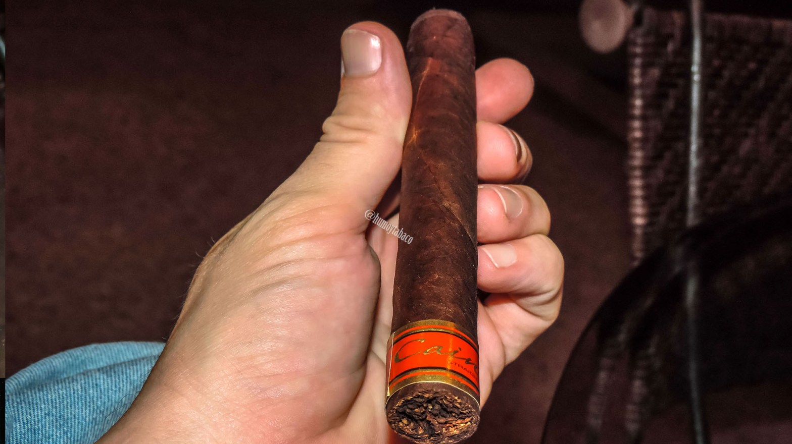 A veces me pasa que me pongo a buscar un puro para catar y puedo pasar mucho más tiempo del que quisiera admitir escogiendo y decidiéndome por uno. También me acuerdo cuando estaba comenzando a fumar y tenía 3 puros diferentes y la decisión era mucho más fácil. Eventualmente compré una caja de belicosos y luego otra caja de torpedos y así, todos de la misma marca, hasta que pude definir los sabores de distintas vitolas. Luego me interesé por probar algo más de distintas marcas, así que me compré unos 15 puros distintos, y el resto es historia. Pero a veces me sigue sucediendo que abro el humidor y no sé por cuál decidirme, así que me impongo una cierta estructura para fumar puros y la trato de respetar, por lo que decidí darle fuego a este Cain, del que ya había probado el lancero y me pareció muy bueno y muy fuerte. Precisamente, buscando esa intensidad, decidí darle fuego a este.