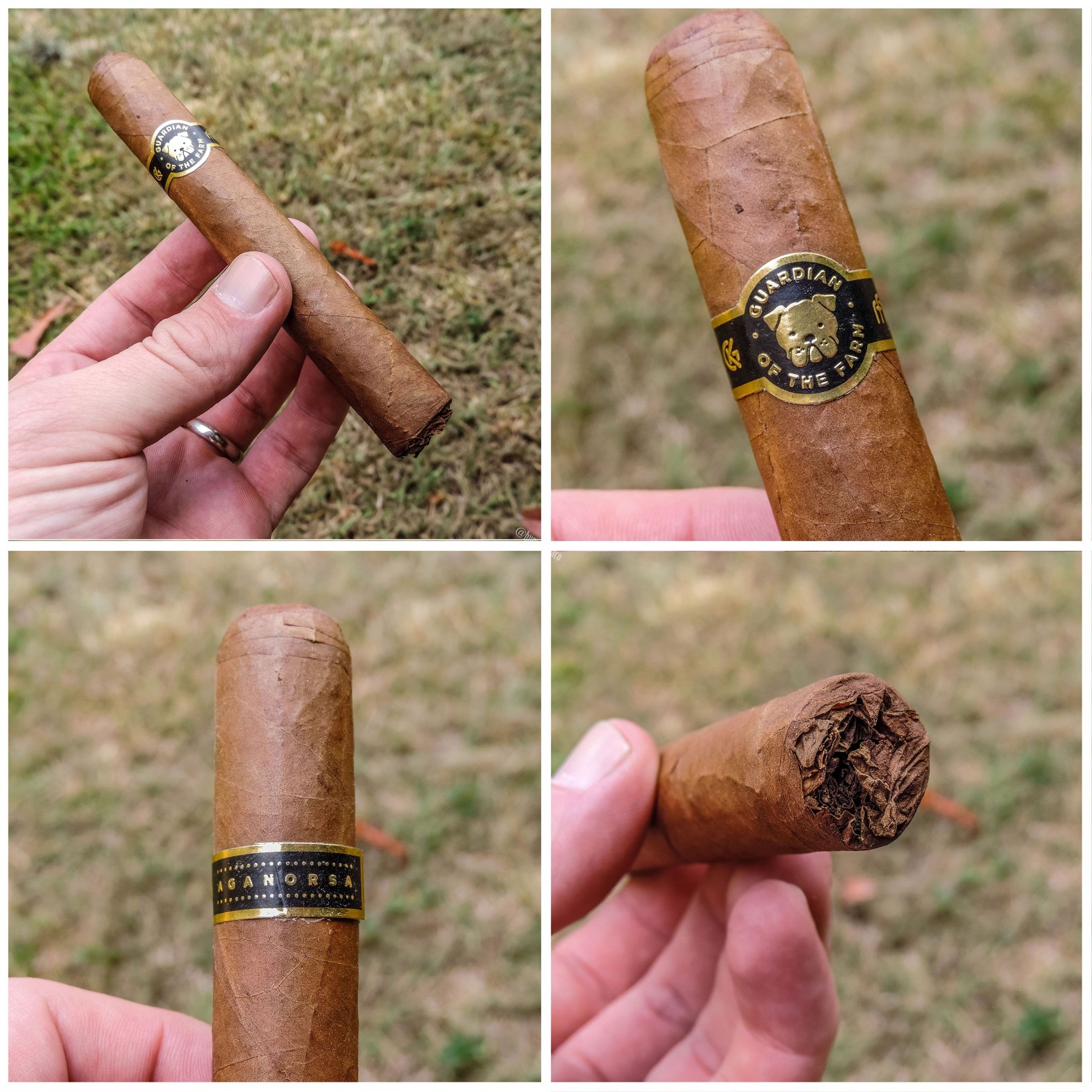 Guardian of the Farm es un cigarro dedicado a los perros que cuidan las fincas de Casa Fernandez, e incluso todas las vitolas llevan nombres de cada perro, y una versión adicional con el sufijo Selección de Warped se colocó en el #8 de Cigar Aficionado para 2017 (y tengo en el humidor). Todos los cigarros son creados con un 100% de hojas provenientes de la fábrica de Aganorsa en Nicaragua. La capa apenas tiene un toque de oleosidad, con aromas a tabaco rico y un poco de madera, mientras que en el pie, que es cerrado pero en mi cigarro se ha descubierto un poco, se aprecian tierra y dulce. En la calada en frío se siente madera, paja y tabaco muy rico.
