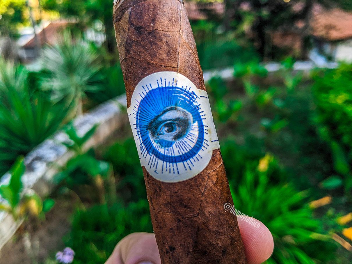 Este Archetype es el último del sampler de Large and In Charge que adquirí de Small Batch Cigars, un sampler de cigarros de gran formato que, en su mayoría, han sido afectados por el mismo problema de los cigarros de tamaño grande y vitola gigante: carecen de intensidad. Aunque se ven grandes e imponentes, en realidad son los cigarros con sabores más diluidos y con menor intensidad. Sin embargo, el Sage Advice solamente está disponible en tres vitolas, ninguna de las cuales es necesariamente pequeña (5×52, 6×52 y este 6×60), así que al menos siento que voy a estar cerca de la intención del master blender. La capa del cigarro se nota bastante marmoleada, variopinta e irregular… corrugada, diría en términos técnicos. Como el cepo es de 60 aprovecho para picarlo con un punch, pues son pocas las ocasiones que tengo de usarlo. En la capa se sienten fuertes aromas de establo, paja y pimienta, mientras que la calada en frío presenta tabaco dulce, tierra y un toque de fruta cítrica.