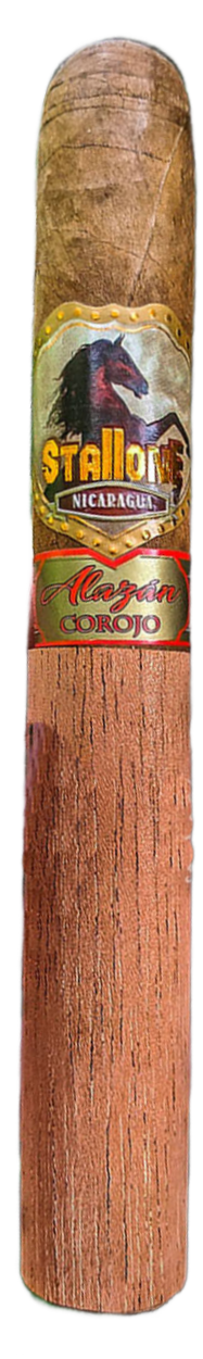 Al igual que todos los Stallone, el Alazan Corojo viene envuelto en una lámina delgada de cedro. Yo siempre he pensado que estas son para encender el cigarro, pero como todas tienen una cinta plástica (scotch tape) para mantenerla en el cigarro, pues prefiero hacerlo con encendedor o fósforos. Contando que ya los cigarros tienen alrededor de 3 meses en mi humidor, creo que no hay mejor momento para probarlo. Pero antes le quito la madera y procedo a apreciar un poco el cigarro en frío. Lo primero que noto es que la capa es bastante mate, con poco brillo y una apariencia áspera… esto no es malo, solo es una capa corojo. Tiene pequeñas venas y un aroma a madera (por razones obvias), vainilla, establo y suave de tierra seca. En el pie puedo apreciar más madera, aunque no es la misma madera de la capa, cuero y paja. Lo pico con la guillotina en V y en la calada en frío aprecio madera, café y un aroma ligeramente herbáceo.