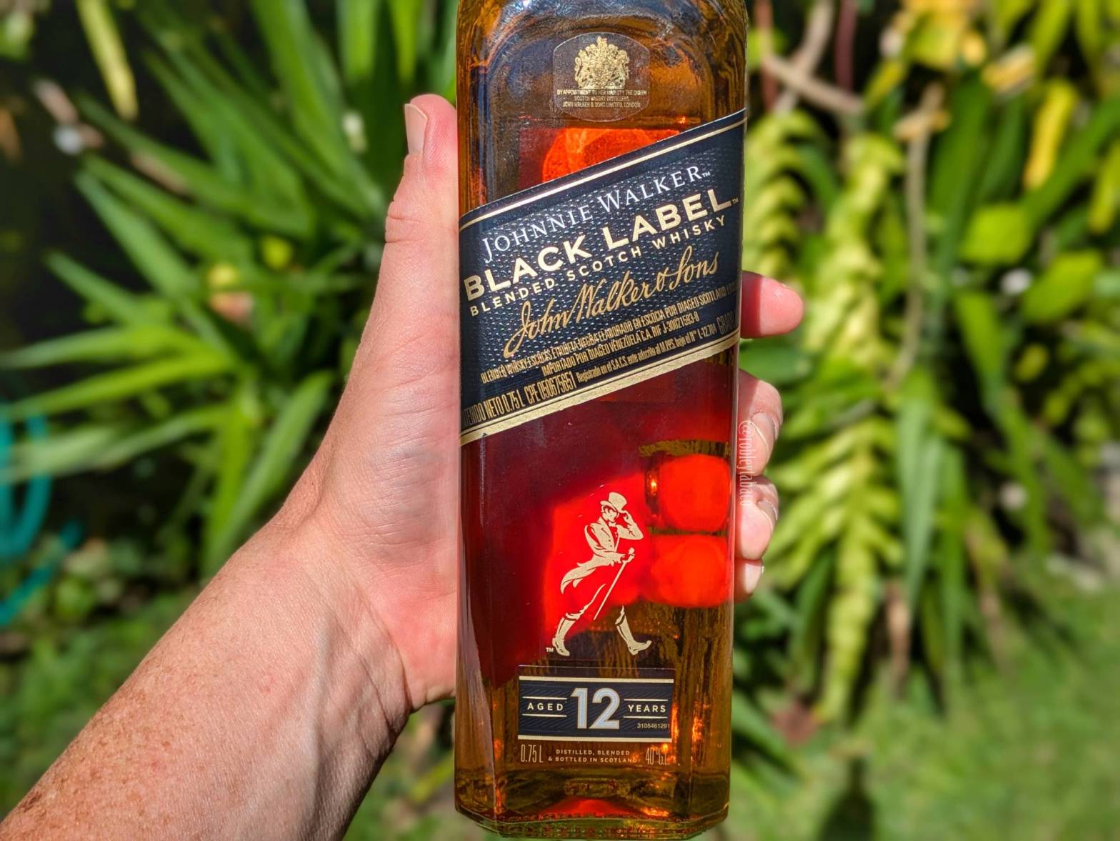 El Etiqueta Negra viene siempre en la botella cuadrada, diseñada en 1920 por Alexander Walker. Es una forma exclusiva de la marca y diseñada para ser ergonómica y permitir que se almacenen más botellas en áreas cuadradas con menos chance que se rompan.