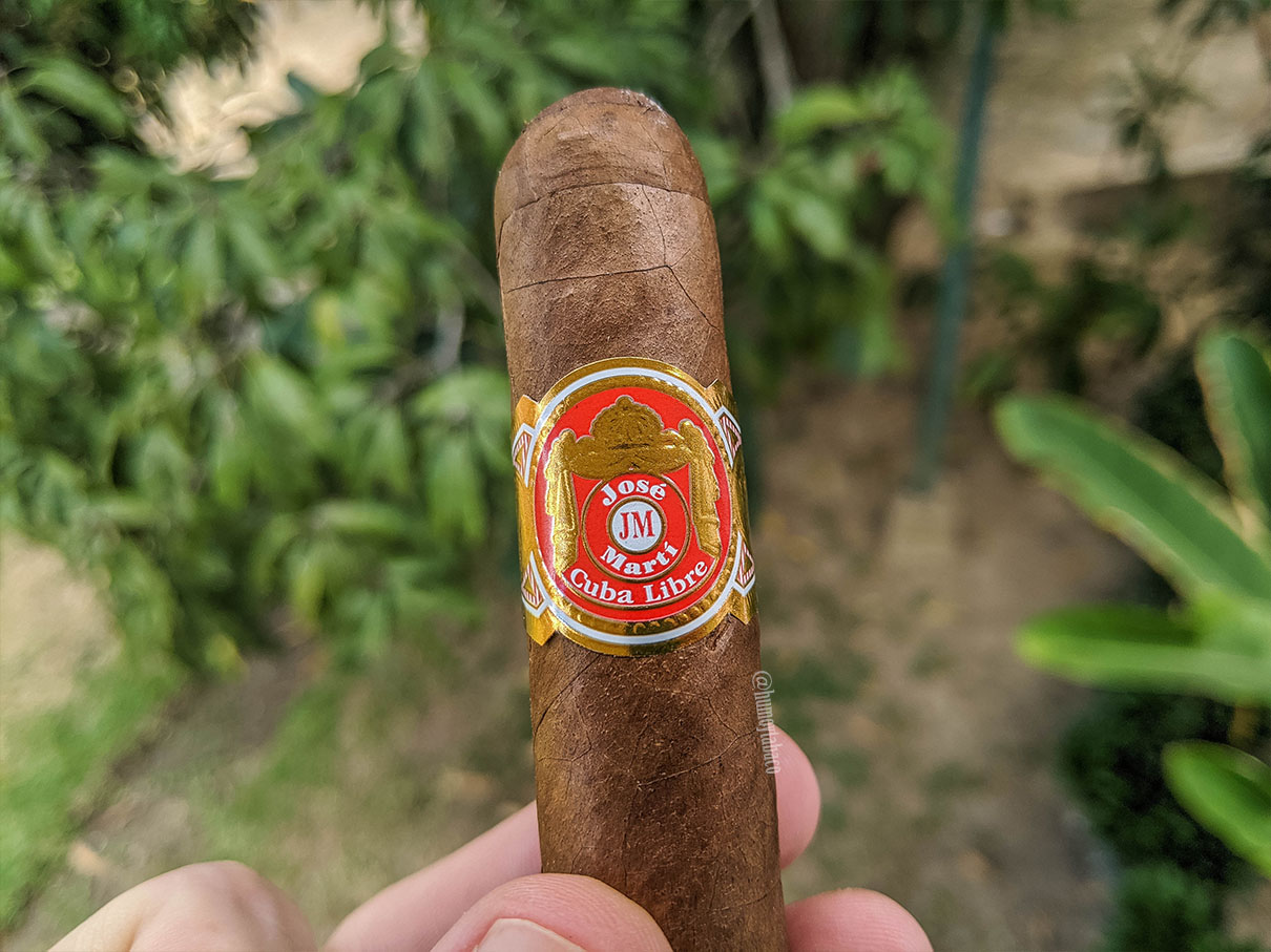 Pero la verdad es que el José Martí no se ve como un mal cigarro. Es la segunda vez que fumo uno, pues la primera fue pensando «qué tan malo puede ser?» y en esa ocasión descubrí lo malo que era. Pero la verdad es que este cigarro tiene más de un año de guarda y, aunque eso no es garantía que va a ser una buena fumada, al menos no creo que sea tan mala como la primera vez. La capa del Cuba Libre es bastante imperfecta, corrugada y con aromas fuertes a chocolate, que me hacen pensar que el cigarro es infusionado, pero también se aprecia un aroma a cuero y dulce. En la tripa se aprecian aromas de cuero y madera y, finalmente lo pico y aprecio un aroma de madera únicamente.