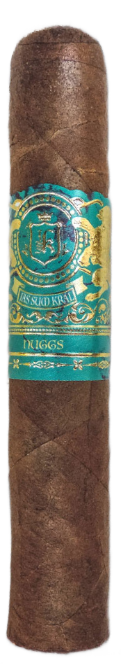 Hace unos meses estuve en la tienda Smoke Inn de Pompano Beach, FL y cuando entras a la tienda, antes del humidor principal suelen tener una mesa donde tienen los últimos productos que han llegado o alguna oferta especial que tienen en el punto. En mi visita previa compré varios de Southern Draw, por ejemplo, pues habían tenido un evento unas semanas antes. Pero el hecho es que esta vez vi que tenían algunos cigarros de Jas Sum Kral, y ya habiendo probado el Kralot, decidí tomar algunos. Entre ellos habían algunas ediciones del Tyrannical Buc, pero también estaba este Nuggs, que no conocía pero igual tomé. Luego de llegar a casa me puse a investigar y vi que es un cigarro infusionado con CBD.