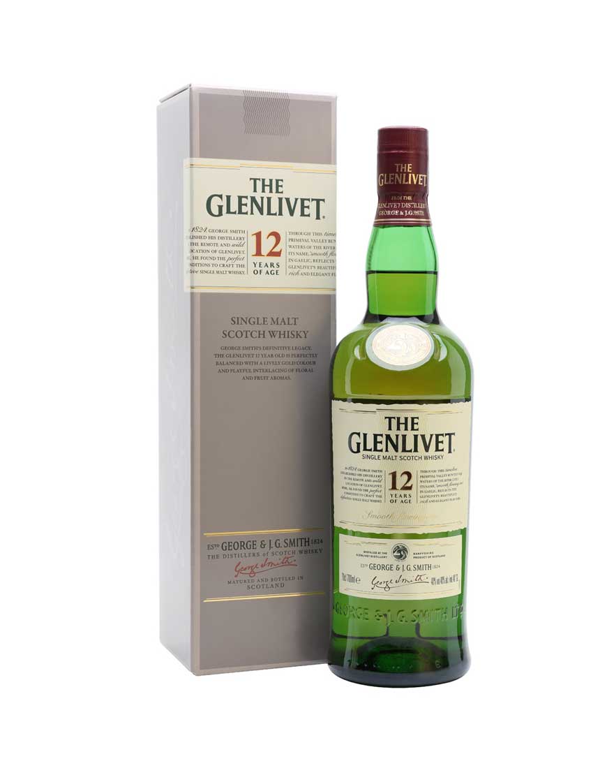 El Glenlivet 12 Year Old es el whisky más vendido de sus productos básicos. Según la marca, representa el estilo original de la marca, en donde el malteado clásico es madurado primero en barricas de roble y posteriormente en barricas de roble americano, que le dan notas de vainilla y una suavidad muy característica. El agua rica en minerales que viene de los manantiales cercanos a la destilería le da forma a los sabores que se producen durante el destilado y fermentado, mientras que la altura de la destilería y el tamaño de los alambiques de cobre le aportan una personalidad delicada pero compleja.