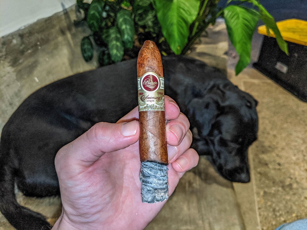 A la mitad del 1964 Anniversary regresan los sabores de chocolate, en la misma intensidad y estilo que durante el primer tercio. La intensidad del cigarro también aumenta y mientras lo fumo lentamente y marco 45 minutos de fumada llego a la conclusión de porqué le di tan baja puntuación originalmente. El cigarro me parece uno para fumadores experimentados; si bien sus sabores son ricos y tiene inmensidad de matices, en verdad puedo contarlos con los dedos de una mano e incluso me sobran dedos. Es a partir de un paladar experimentado que aprendes a apreciar matices, toques, intensidades y cremosidad en el humo y hace 4 años podría decir que no los tenía desarrollados como hoy. Aunque los sabores siguen siendo los mismos, hoy el cigarro me gusta muchísimo más y aprecio cada calada.