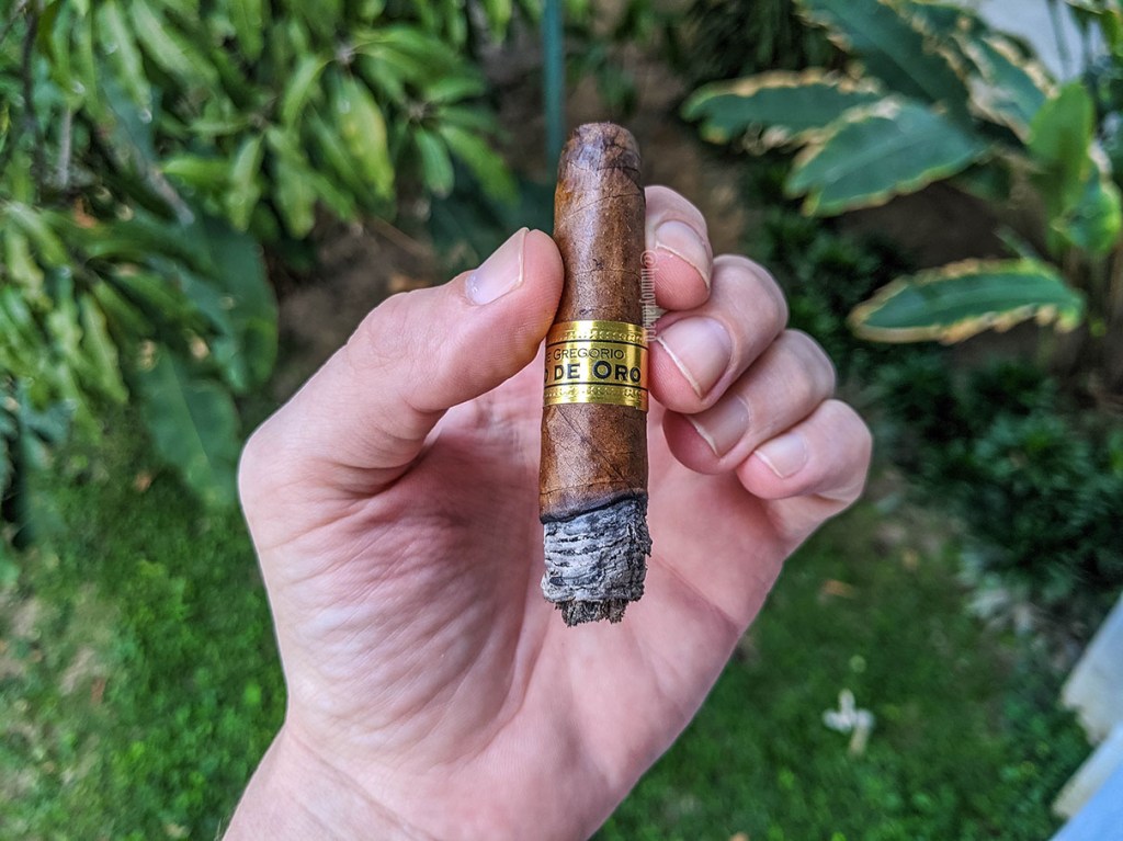 Cabe destacar que, aunque esta variedad de tabaco llamada «pelo de oro» crece a una gran altura (o más alto de lo normal) y que su producción sea super cuidadosa e incluso pase por tres fermentaciones, la hoja ha sido prohibida en Cuba y es algo que muchos productores no tocan por la propensión de la hoja a producir un moho azul que es muy dañino. Por otro lado, no sabía mucho qué esperar de mi primer Felipe Gregorio, pero el tiro apretado, los sabores amargos, el desequilibrio y el papel mojado no estaban en mi lista de deseos del cigarro. Mientras que la quemada fue perfecta y el anillo de combustión ideal, fueron estos los únicos dos aspectos positivos de la fumada. Por ello es casi imposible para mí recomendar este cigarro, aunque no es el único Felipe Gregorio que tengo, pues en mi humidor hay unos 3 o 4 Porto Real, que son fabricados por FG, así que ya veremos cómo va esa experiencia y si la marca logra redimirse.
