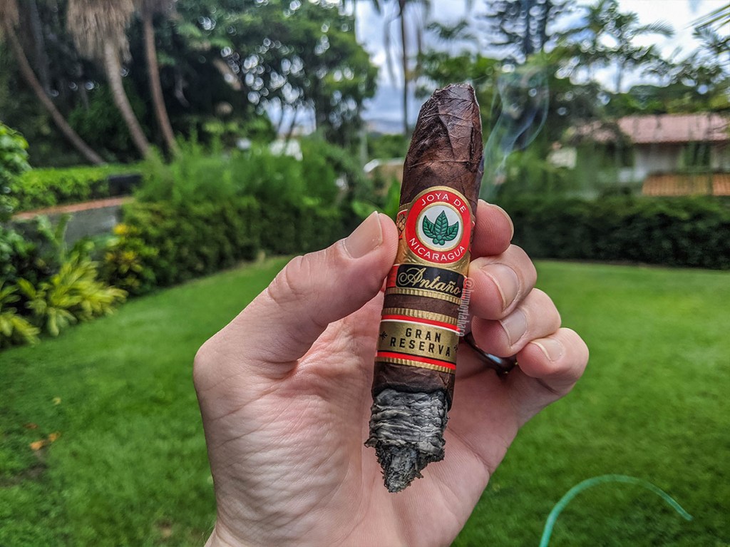 En el último tercio el anillo de combustión comienza a variar un poco, pero nada preocupante y afortunadamente es la primera vez que le doy un toque como tal. En el último tercio el cigarro finalmente se activa con sabores más fuertes de madera, cuero, tierra, café y la pimienta se siente mucho más imponente, pero el retrogusto sigue siendo suave, con canela y pimienta, pero no lleva la misma intensidad de los sabores en el paladar. Al final, luego de una hora y 45 minutos, este Antaño Gran Reserva llegó a su fin.