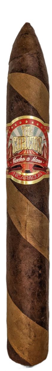 The Circus es la otra marca propiedad de El Viejo Continente, aunque honestamente no me queda claro cuál es el propósito de las dos marcas. Es decir, entiendo que El Viejo Continente es la marca central, con mayor intensidad y variaciones de sabores, pero el rol de The Circus en el portafolio no lo tengo del todo claro, más allá de tener cigarros principalmente con capa habano y de intensidad un tanto menor. No obstante, es la marca que me faltaba de Daniel Guerrero, así que gratamente lo pruebo. Siendo de estilo barber-pole, combina tabaco Habano rosado y maduro en la capa, sobre capote y tripa nicaragüense.