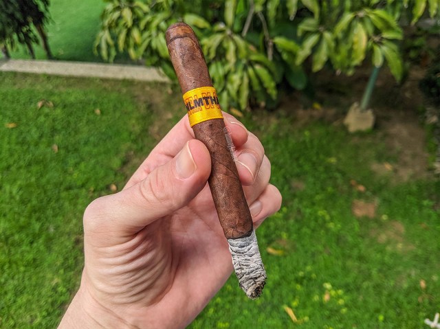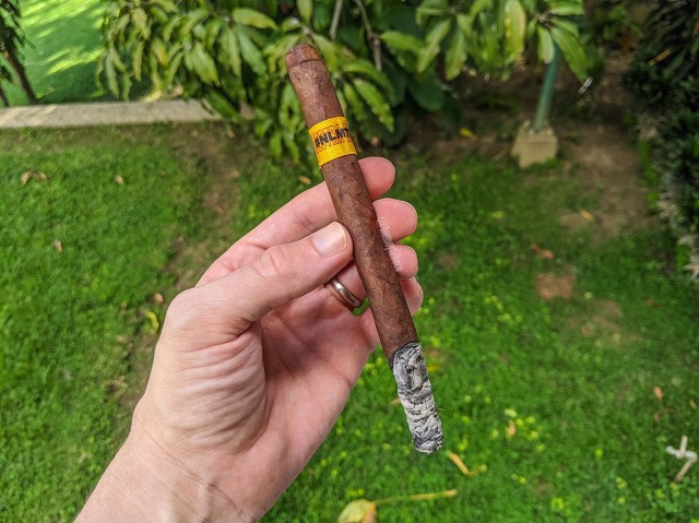 En el último tercio la pimienta se diluye un poco, mientras que las notas de tierra toman un matiz más hacia el ácido y en momentos se siente más mineral, hacia la tiza. Pero también parece tener mayor intensidad, aunque en ninguno de los casos puedo decir que es una mejora en el cigarro, sino un cambio de carácter, por así ponerlo. Ese aspecto ácido se deriva en una sensación cremosa a mitad de este último tercio y produce notas de nueces que duran hasta el final. En términos técnicos y de construcción, el cigarro se ha comportado de manera fantástica a partir de la mitad, que fue donde el tiro e acomodó y produjo cantidades impresionantes de humo con un tiro ideal, y a una hora y media de fumada, pues nada mal.
