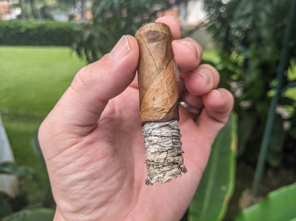 El último tercio es muy parecido al segundo, con el cambio más radical siendo un aumento de la intensidad, llegando a media-alta, pero con más propensión a regresar a media que a aumentar más. Hacia el final los sabores de madera, cuero y tierra se van desvaneciendo, aunque no desaparecen del cigarro, mientras que los de café, vainilla y crema van aumentando. El cacao parece haberse perdido en algún punto entre el segundo y último tercio, pero no sin antes diluirse bastante, por lo que su eventual desaparición fue tan reconocida como la del pan tostado del primer tercio. Si algo tengo que reclamarle al cigarro es que me pareció que duró poco tiempo, alcanzando alrededor de una hora y 15 minutos, pero tengo dos más para extender mejor esos tiempos.