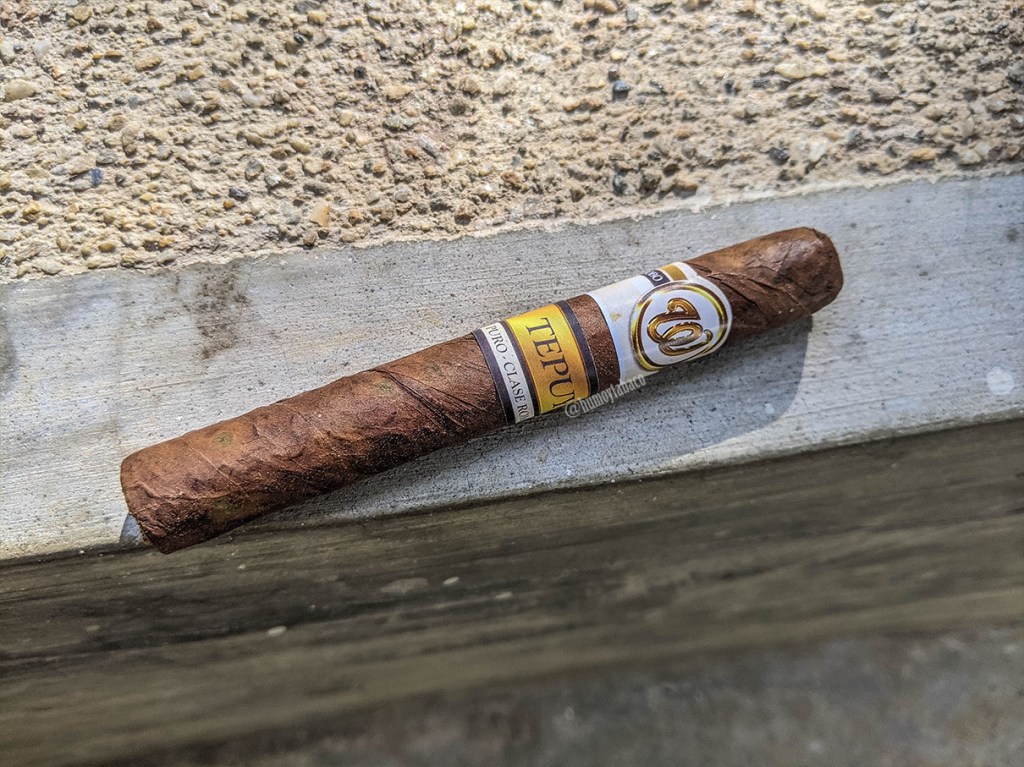 Esta es la tercera variación del Tepuy que pruebo, habiendo sido parte de la creación de su liga desde el inicio. Bueno, no, eso es exagerar. Solamente me han pasado pruebas en las que digo qué me gusta y qué no me gusta, pero no he llegado a decir «ponle más de esta hoja» o «tres gramos menos de aquella». Sin embargo, mucho agradezco a Hector la oportunidad. El Tepuy es un puro venezolano clase Romeo, con unas dimensiones de 5 x 38, donde todo su tabaco es guácharo cubano, sembrado en Venezuela. Por esto es un cigarro de apariencia rústica, especialmente porque la capa, aunque seleccionada para tal fin, no es especialmente llamativa. Sin embargo, tiene aromas de té cítrico (ahí no falta una coma, es un té cítrico), cáscara de cambur (banana, si no estás en Venezuela) y pasas. En la tripa se aprecian prácticamente los mismos aromas, pero incluye notas de bosta y finalmente, en la calada en frío, se aprecia cítrico y chocolate.