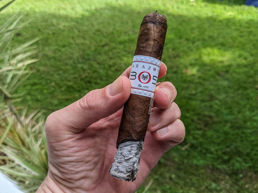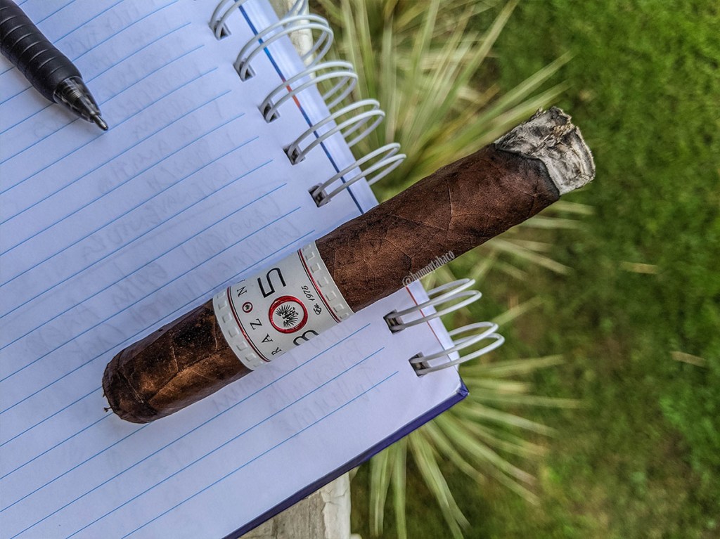 El 305 de Tarazona impresiona desde la primera calada, quizá más por lo sutil y «delicado» que se siente que por la intensidad de sus sabores. En cierto modo me recuerda cigarros muchos más caros y selectos, aunque el hecho que este cigarro sea un obsequio puede obviar ese detalle. Sin embargo, el todopoderoso Google me muestra que es un cigarro ligeramente por debajo de $10 y realmente se siente como algo más caro. Desde la primera calada los sabores a chocolate son intensos, acompañados de madera y ese aroma de cuando entras a un local como McDonald’s y te recibe el olor de las papas fritas. A lo largo del primer tercio siguen apareciendo sabores a eucalipto y vainilla, y algunos matices de chocolate como a nibs de cacao y chocolate tostado.