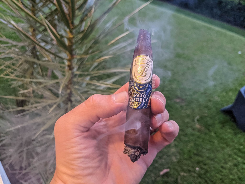 Desde la primera calada este Paso Doble tiene un sabor muy fuerte a pan que domina el tercio, seguido de notas de café, nueces, paja, madera, cuero y un toque de tierra. No hay tanta pimienta como esperaría, sobre todo teniendo en cuenta que el cigarro ha sido hecho por La Flor Dominicana, aunque en el retrogusto es donde se aprecia, junto con vainilla, aunque esta última no está presente en todas las instancias. El tiro es excelente, aunque tiene la resistencia esperada hasta que supera la parte más angosta y el humo es abundante, quizá más de lo esperado, pero no quiero decir con eso que no es bienvenido. Sin embargo, en intensidad es bastante bajo, llegando a puntos esporádicos de intensidad media durante este tercio.