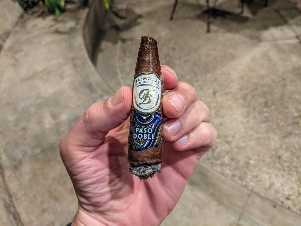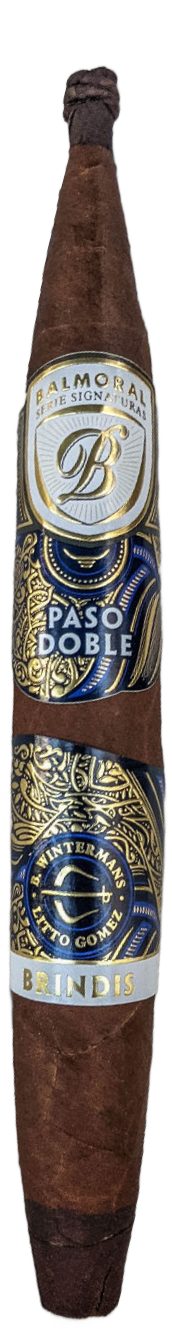 En 2018 la marca Royal Agio lanzó un proyecto bastante ambicioso llamado Serie Signaturas, una serie de cigarros que se haría realidad con dos lanzamientos que combinaran el talento de Boris Winterman, de Royal Agio, con otros fabricantes a fin de producir unas ligas específicas para la marca. El primer lanzamiento fue una colaboración con Ernesto Perez-Carrillo, que llevó el nombre de Balmoral Serie Signaturas Dueto, utilizando una capa nicaragüense de la región de Jalapa, capote nicaragüense de Estelí y tripa de Nicaragua y Brasil. Para 2019 Royal Agio creó la serie Paso Doble, en la cual Winterman colaboraría con otra leyenda del tabaco: Litto Gomez de La Flor Dominicana. El Paso Doble es torcido en la fábrica del anfitrión, en este caso Tabacalera La Flor en República Dominicana, por lo que el cigarro presenta una mayoría de hojas de ese país, con una capa ecuatoriana. La línea fue lanzada en tres vitolas, pero la de esta reseña es un doble perfecto de medidas 7 x 55 como el que se ve en la imagen inferior.