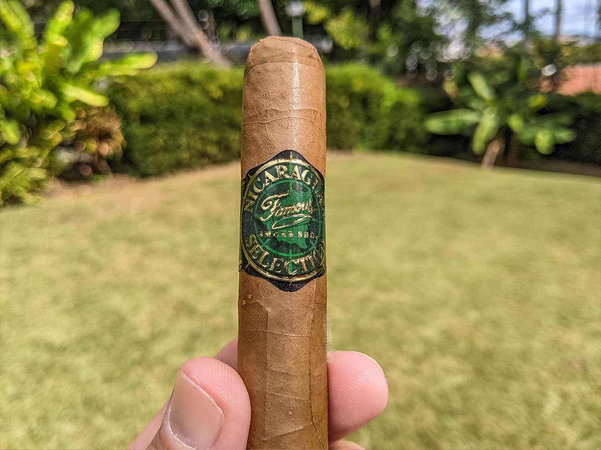 A propósito de mi reseña previa, más de uno me preguntó porqué le di 70 puntos a un cigarro que cuesta tan solo un dólar. La respuesta será más obvia después de leer esta reseña, pero el hecho es que por ese precio y quizá un poco más se pueden hacer cigarros mejores también. Tal es el caso de este Nicaragua Selection de Famous Smoke Shop, una tienda online de cigarros, aunque sospecho que tienen tienda física también en USA. Este cigarro tiene un costo que ronda los $5, y en Venezuela lo vende Tabacos y Vitolas. El cigarro tiene una capa Corojo 99 proveniente de Jalapa en Nicaragua, capote nicaragüense y tripa Corojo y Criollo de Jalapa y Estelí, respectivamente, por lo que constituye un puro nicaragüense.