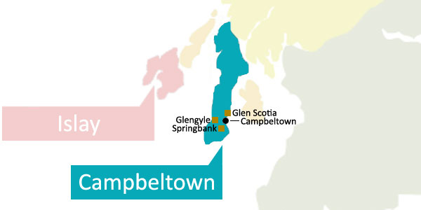 La región de Campbeltown se encuentra ubicada en su totalidad dentro de la pequeña península Kintyre en el sur de Escocia, y se encuentra clásicamente incluida entre las cinco regiones originarias, a pesar que hoy en día solamente existen tres destilerías en ella: Springbank, Glengyle y Glen Scotia.