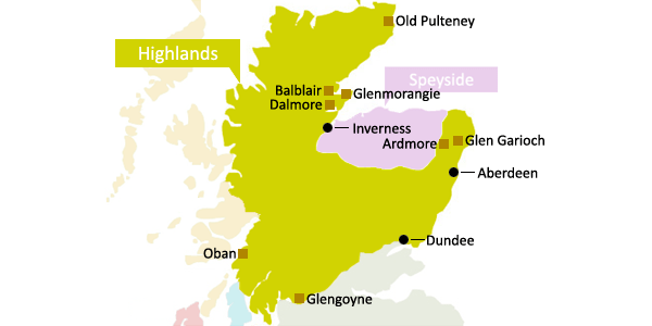Las destilerías del norte de Highland se encuentran entre las más famosas del whisky escocés, como las de Glenmorangie y The Dalmore, que producen maltas más ricas, densas, con toques más dulces. Las regiones este y sur, en comparación, tienden tienden a producir un destilado más ligero, tal como Glengoyne, aunque también se encuentran varios especialistas en jerez, tal como The GlenDronach. Las destilerías del oeste de Highland, por otro lado, como Oban (la más conocida), marcan la diferencia entre las maltas de Islay y Highland, destacando un equilibrio entre sabores tradicionales de Highland y notas más ahumadas. El whisky Oban 14 puede ser una suma de todas las influencias de la región, con su carácter ligeramente afrutado, dulce, ahumado y con notas que le gustan a todos.