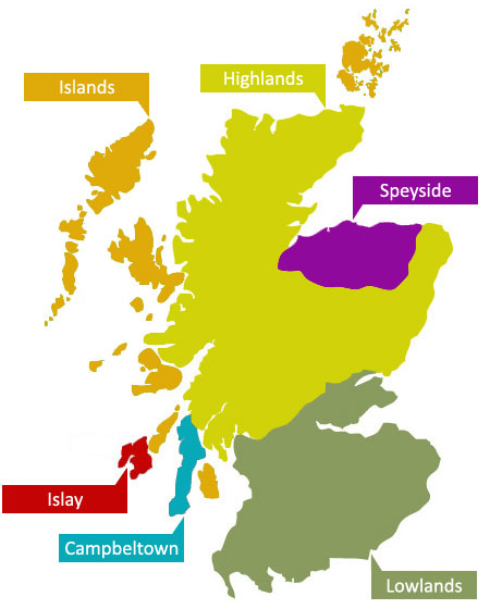 Al igual que el ron tiene sus regiones que determinan el sabor, aroma, imagen y añejamiento del líquido, y el vino es quizá el mejor ejemplo de ello, incluso cuando distintos tipos son producidos incluso en el mismo país. Sorprende la cantidad de destilados y bebidas alcohólicas en general cuyos sabores difieren de una región a otra. No debería impresionar que el whisky escocés también las tenga y que incluso sean seis regiones. Quizá si tomamos en cuenta que Escocia tiene menos de 6 millones de habitantes, esto impresiona un poco más. Si marcamos que Escocia es ligeramente más grande que Panamá, esto casi deslumbra, sobre todo si vemos que países como Honduras, Cuba o Jordania son bastante más grandes que Escocia.