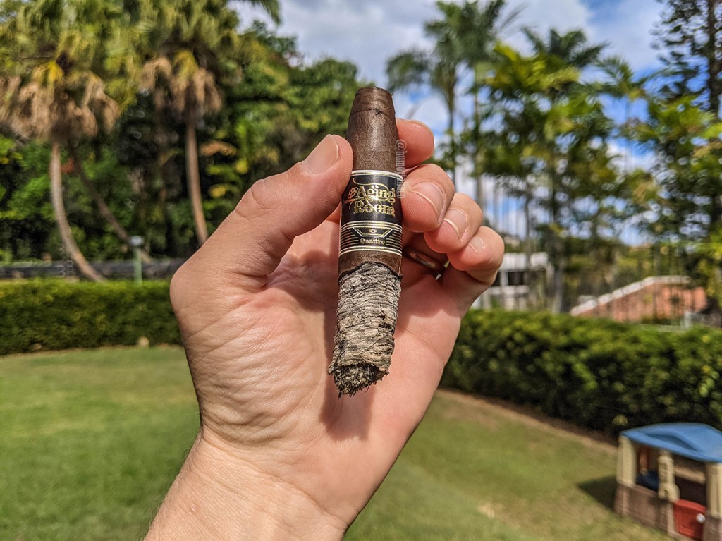Los sabores son los mismos en el último tercio y llego a la conclusión que he llegado en otras ocasiones, y es que cada vez confío menos en las puntuaciones de Cigar Aficionado. Es un buen cigarro, pero no es una joya majestuosa, y la verdad es que con la puntuación que recibió se convirtió en un cigarro muy difícil de conseguir en su momento, pero desde hace unos meses lo he visto en muchas páginas, con muchas ofertas y eso simplemente no ocurre con cigarros de esta categoría. Quizá lo que me gusta menos del cigarro es la ausencia de matices y notas menores, pues lo que tiene son cuatro sabores que se sienten a lo largo de toda la fumada y no mucho más. En el último tercio el chocolate desaparece y la pimienta se potencia aún más, por lo que si no fuera por el tiro medio apretado (porque se ha soltado un poco), igual debería fumarlo lento. Pero al cabo de una hora y media, el cigarro llega a su fin.