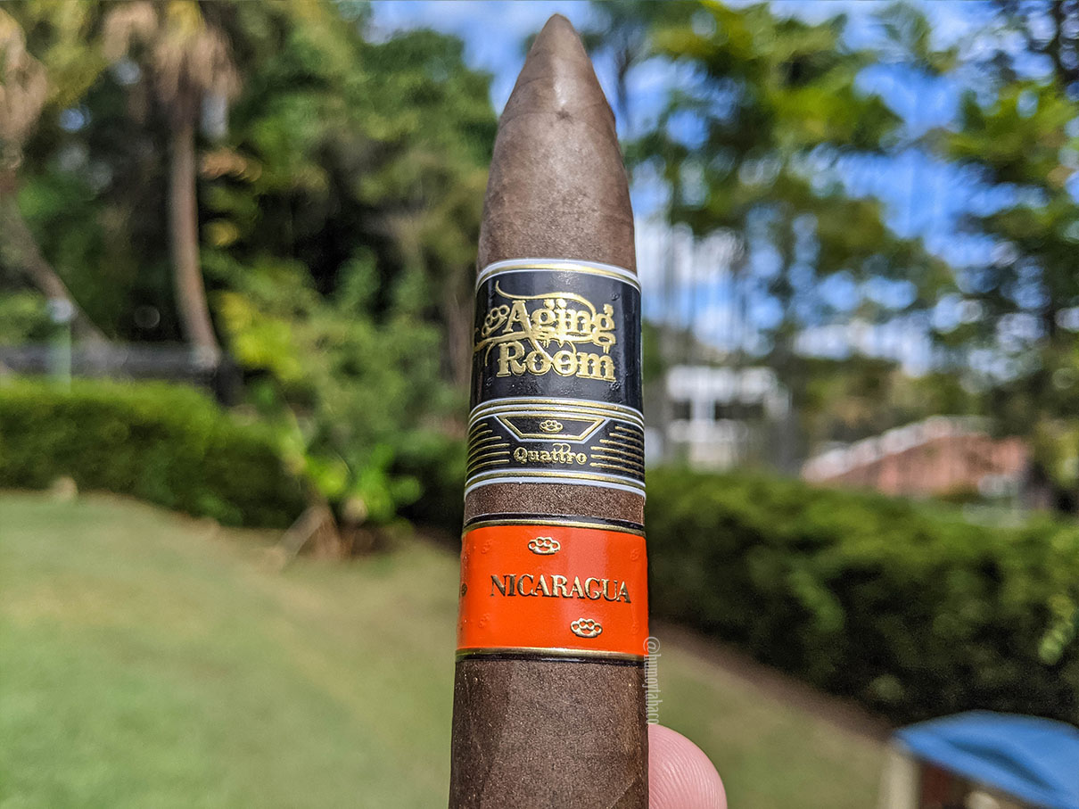 El Quattro Nicaragua es un buen cigarro de AJ Fernandez y también es un buen cigarro de Aging Room, pero ambas marcas tienen cigarros mejores y por su precio hay cientos de cigarros mejores en el mercado. Para la posición que este logró esperaba algo más y este carece de complejidad, transiciones, matices y equilibrio. Ciertamente toda la fama que ganó este cigarro con su nombramiento creo que le hizo más daño que bien, pues se debe haber vendido bastante, pero si mi experiencia fue la misma con otras personas, pues no será un cigarro que sobreviva en el orden de los mejores que se han hecho. Es como cuando te pones el objetivo de ver las películas que han ganado el Oscar a mejor película año a año y vas muy bien con algunas, pero luego ves Titanic y te preguntas ¿por qué? Pues eso.