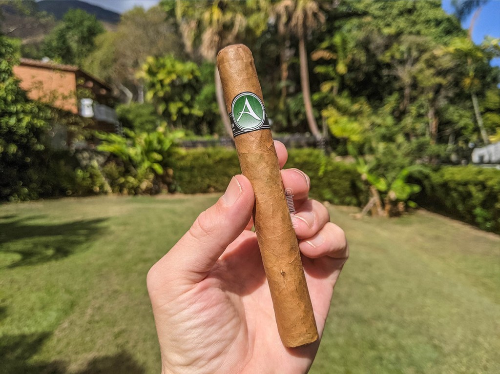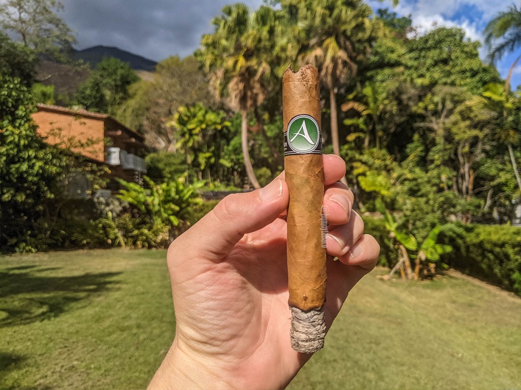 Hace poco tenía una discusión (amigable) con un amigo fumador, quien es sommelier y mencionaba que la mayoría de los cigarros no tienen sabor alguno en el primer tercio, sino que es en el segundo y último donde los sabores aparecen, y que quien encuentre sabores en el primer tercio está mintiendo. Por supuesto que me tomó como 3 minutos cerrar la boca de la impresión y luego le dije que eso no es así. El primer tercio tiene sabores y estos en ocasiones pueden ser suaves, como es el caso específico de este Artisan, pero para nada están ausentes de sabor. Este en particular comenzó muy suave y casi tímido de sabores, pero en el segundo tercio muestra notas más dulces, afrutadas y de café cremoso y toques de pimienta.