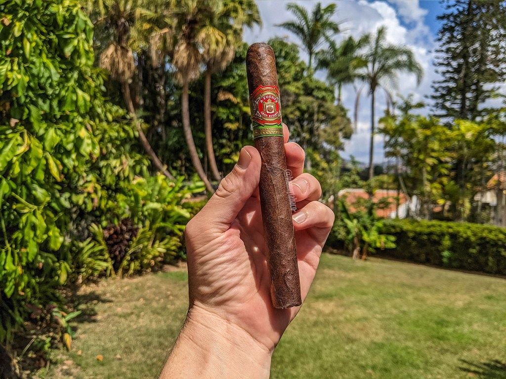 Mis impresiones con el robusto que probé hace un poco más de dos años fueron las de un cigarro bastante decente, con sabores interesantes aunque muy al estilo de un maduro de esos que me cuesta defender por su suavidad y sabores más bien homogéneos. Sin embargo, al menos no es el de capa Connecticut shade, que he probado antes y ni siquiera quise reseñar. Hay poco en la anilla que identifique al cigarro, pero ese detalle verde en versiones más premium de la marca es negro, así que al menos un pequeño indicio existe. El cigarro viene envuelto en una lámina de cedro, lo cual le aporta la gran mayoría de aromas que pude sentir en la capa. Sin embargo, la calada en frío presenta notas suaves de café y por ser una capa madurada, también se sienten notas dulces, aunque estas son en los labios.