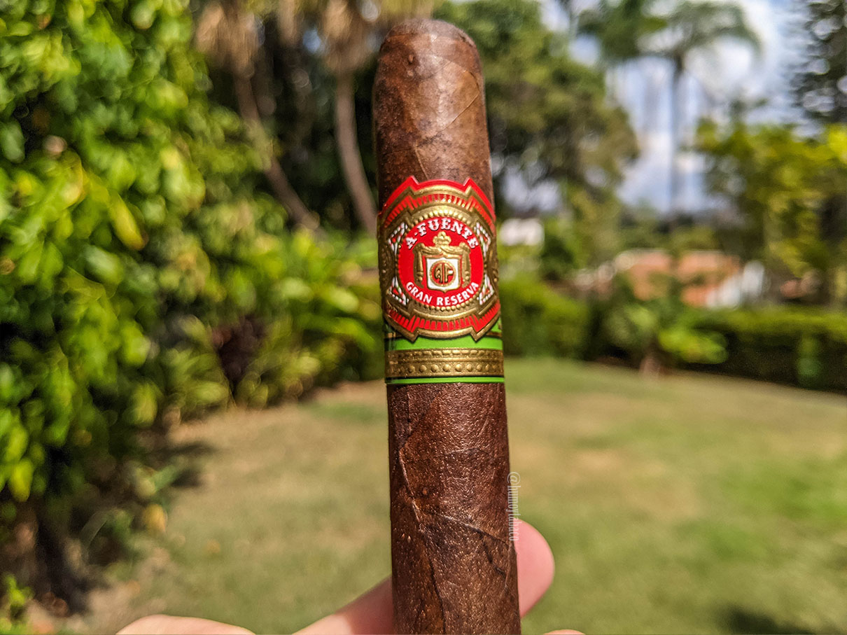 Mis impresiones con el robusto que probé hace un poco más de dos años fueron las de un cigarro bastante decente, con sabores interesantes aunque muy al estilo de un maduro de esos que me cuesta defender por su suavidad y sabores más bien homogéneos. Sin embargo, al menos no es el de capa Connecticut shade, que he probado antes y ni siquiera quise reseñar. Hay poco en la anilla que identifique al cigarro, pero ese detalle verde en versiones más premium de la marca es negro, así que al menos un pequeño indicio existe. El cigarro viene envuelto en una lámina de cedro, lo cual le aporta la gran mayoría de aromas que pude sentir en la capa. Sin embargo, la calada en frío presenta notas suaves de café y por ser una capa madurada, también se sienten notas dulces, aunque estas son en los labios.