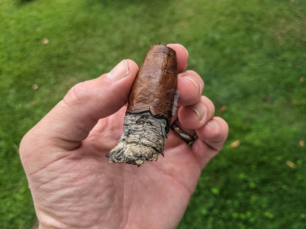 En el último tercio los sabores se hacen más fuertes al igual que el cigarro, sobre todo esos sabores de notas florales y pimienta son los más destacados, seguidos de cerca por madera y chocolate, mientras que la nota dulce ahora es esporádica y no siempre se siente del todo. El cigarro comienza a hacerse más esponjoso en este último tercio y la experiencia no es del todo agradable, con un regreso de esas notas ácidas, aunque no son fuertes y afortunadamente me permiten disfrutar de cigarro hasta el último punto, cuando ya me estoy quemando los dedos y al cabo de una hora y 20 minutos.
