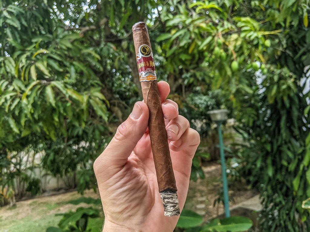 Por supuesto, bastó que dijera lo último del párrafo anterior y el cigarro comenzó a hacer todo lo contrario. Hasta el segundo tercio el mayor problema era una tendencia a apagarse, pero en el último no solo se apaga con cierta regularidad, también quema bastante mal. Adicionalmente, pareciera perder consistencia o rigidez hacia la perilla, lo que hace que el cigarro se vea más masticado de lo que realmente está, y siendo un lancero he tenido todo el cuidado del mundo de no presionarlo mucho, pero cada reencendido hace mella en la calidad de la fumada, incluso utilizando un encendedor de una sola turbina. Eso ha hecho (creo yo) que no se sienta una gran transición entre el segundo y el último tercio, pero la verdad es que los sabores estaban bien agradables antes y en este tercio lo que se sienten es un tanto más tostados y con una pequeña nota amarga, pero nada terrible, hasta que se apagó cuando le quedaban unos 10 minutos de fumada pero decidí no reencenderlo. En total me duró 75 minutos.