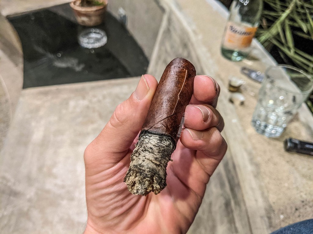 Para el último tercio el tiro se abre un poco más y me aproximo a lo que debería ser una fumada normal, y esto hace que la intensidad del cigarro se coloque en alta inmediatamente, lo cual agradezco enormemente y me hace agradecer tener más cigarros que solamente este. El retrogusto comienza a mostrar sabores de pasas, que acompañan ahora al merey y la pimienta, mientras que en el paladar se encuentran las mismas notas de chocolate, café y pimienta, pero con la adición de merey aquí también. El cigarro sigue quemando bastante lento, lo cual me permite disfrutar bastante del tercio con el tiro en óptimas condiciones, pero cuando me quedaban como 3 minutos de cigarro este se apagó y no lo pude volver a encender. La sensación fue como cuando te despiertas 5 minutos antes que suene el despertador y sabes que no te puedes volver a dormir. Pero fueron dos horas que pasé con el cigarro.