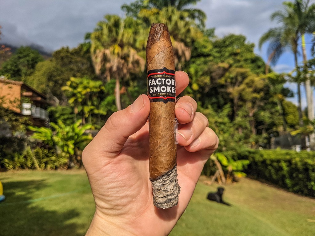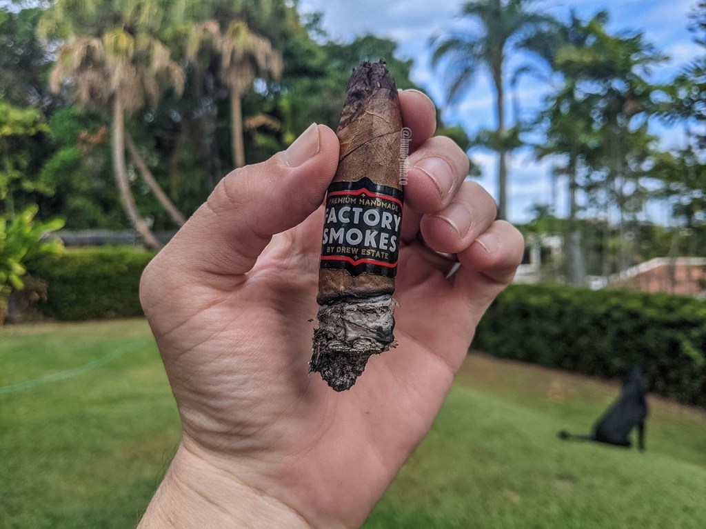 Decir que este cigarro no me gustó porque es dulce sería como decir que no me gusta un Ferrari porque gasta mucha gasolina, o porque no tiene suficiente espacio en el maletero; simplemente no es para eso. El Factory Smokes Sweets de Drew Estate tiene muchísimo en contra a los ojos de un fumador de cigarros más premium: se trata de un cigarro de $2 con la perilla saborizada. Antes de encenderlo preferí lidiar con todos esos temas y mentalizarme que compararlo con los que normalmente fumo sería absurdo, sino que me lo tengo que fumar como lo que es, e incluso con su perilla dulce, el cigarro es agradable. Pero a partir de la mitad se sintió muchísimo menos «comprometido» en dar un sabor y una experiencia agradable, pero por su precio podría fumarse hasta la mitad y valerlo, pero ciertamente no es un cigarro que compraría y nuevamente no entiendo como alguien podría comprar una caja de ellos y no saber que son endulzados ni porqué son tan baratos.