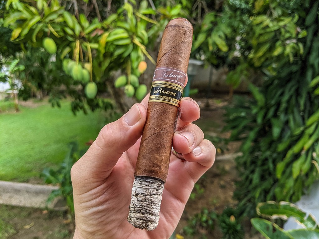La gran mayoría de cigarros de capa Broadleaf que he visto tienden a ser bastante imperfectos, corrugados y casi que mate en la superficie, por lo que me llama bastante la atención la capa de este Tatuaje, pues aunque imperfecta y nada lisa, tiene una marcada oleosidad muy llamativa. La capa tiene aromas de establo, tierra mojada, paja, madera vieja y cuero, mientras que la calada en frío presenta notas bastante sutiles de chocolate junto con cuero, pimienta y frutos secos. El tiro en frío se siente ligeramente apretado, pero he llegado a la conclusión que se trata de un estilo de My Father, pues en frío la mayoría de ellos son así.