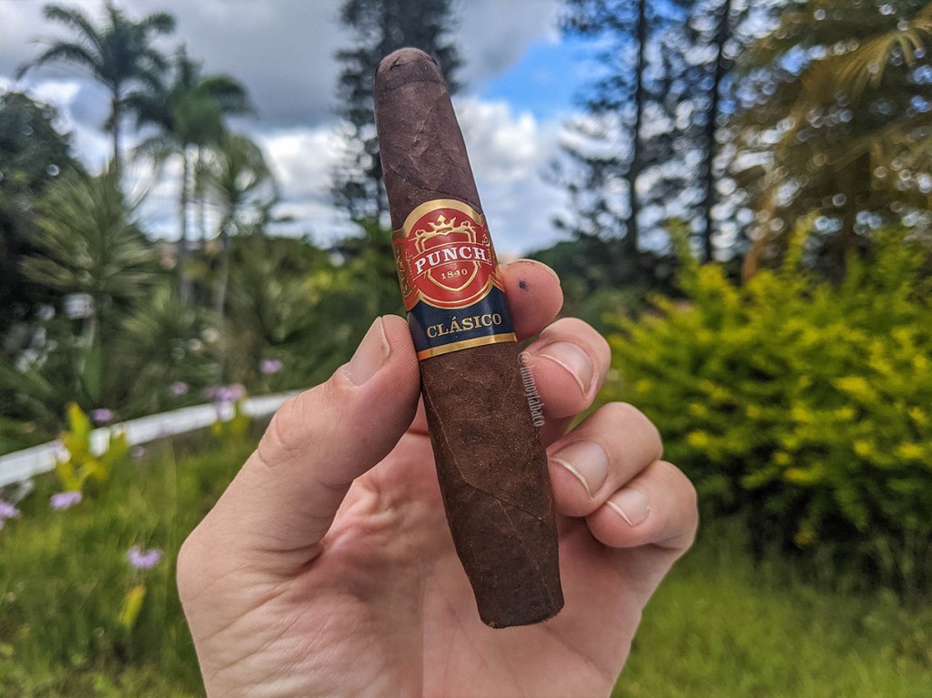 Como su nombre lo indica, este cigarro es un clásico, o al menos eso interpreto con respecto a su construcción. Es un cigarro fabricado en Honduras, al igual que todos los Punch, con excepción del Diablo, que es nicaragüense. Tiene una capa Sumatra ecuatoriana sobre capote Connecticut Broadleaf y tripa de Honduras, República Dominicana y Nicaragua y está disponible en varias vitolas. Esta vitola en particular se llama Champion y es una de las 17 vitolas en las que está disponible, y gracias a su forma singular es difícil marcarla con un solo número. Si bien tiene 4,5 pulgadas de largo, en el pie tiene un cepo 44, en el cuerpo un 60 y en la cabeza es 30. Es una de las primeras líneas producidas por la marca desde que estableciese en Honduras (no la cubana, claro) y en su vitola After Dinner se colocó en el peldaño #12 en el Top 25 de Cigar Aficionado para 2018.
