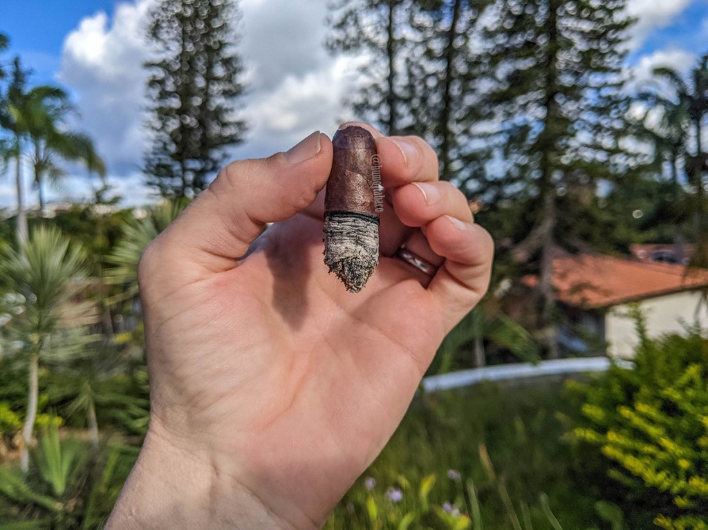 En el último tercio, y eso que la imagen destaca prácticamente los últimos momentos del último tercio, los sabores se mantienen consistentes y sin mayores cambios, salvo una mayor concentración de ellos lo cual no es de extrañar teniendo en cuenta que el cepo del cigarro se ha ido consumiendo y cerrando un poco. Al poco tiempo de hacer la foto el cigarro se apagó solo y tomé eso como la señal de no encenderlo nuevamente. No hay sabores nuevos, solo una mayor intensidad y así, al cabo de una hora y 35 minutos, el Clásico de Punch llega a su fin.