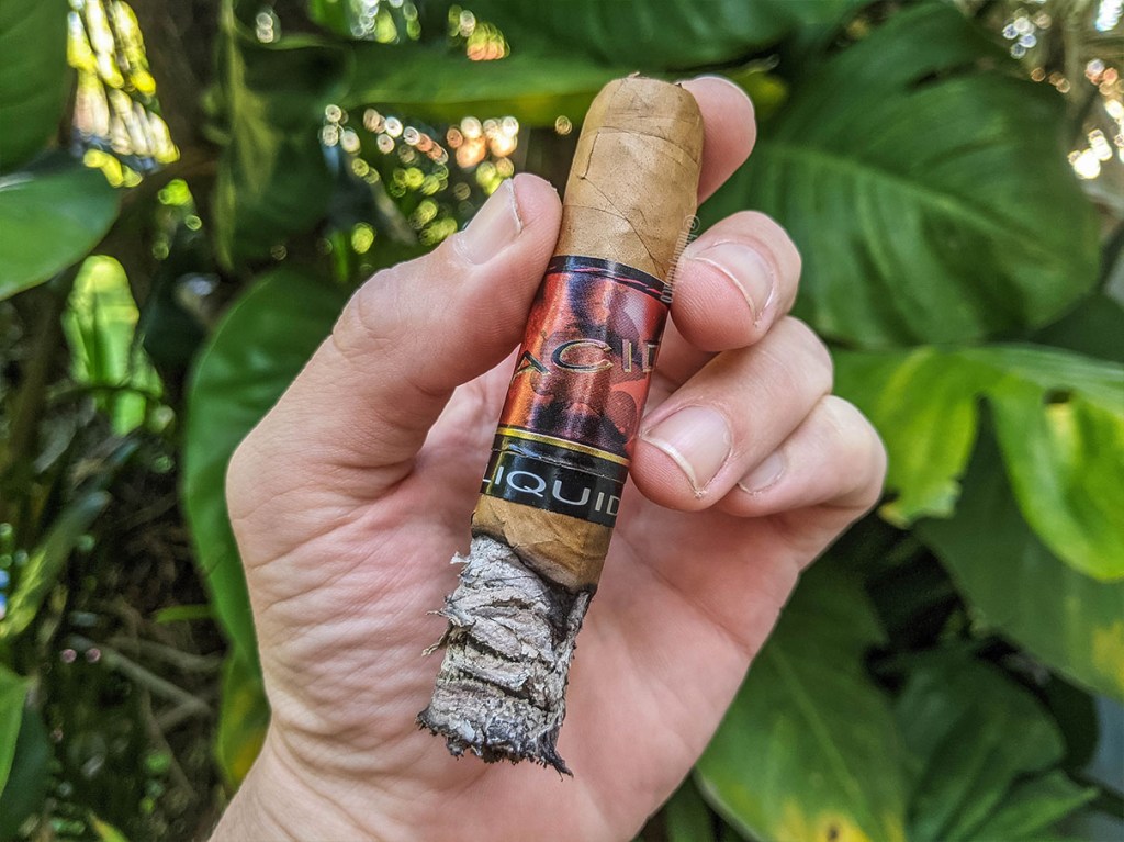 Hasta ahora ha sido mi mejor experiencia con un ACID, en gran parte por la ausencia de dulce en la perilla, aunque no es el primer ACID que fumo con esa característica. No obstante, puedo calificar mi experiencia como positiva en gran parte gracias a esa capa Connecticut, que hizo que la experiencia fuese la menos invasiva hasta el momento y, aunque los sabores se quedan conmigo durante un largo rato después de la fumada, estos no son desagradables ni demasiado intensos, solo queda como un ligero perfume. Mantengo mi punto que no es el tipo de cigarro que fumaría con regularidad, pero creo que este Liquid en particular podría combinar bien con un buen cóctel dulce/ácido. Ahora solo falta lograr esa combinación.