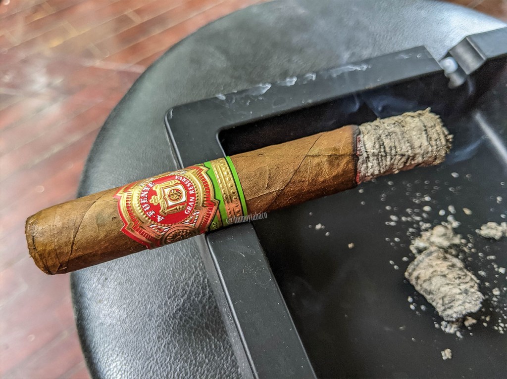 En el último tercio aparecen notas de cuero que acompañan a la madera en su liderato de intensidad, aunque las notas dulces y cremosas se mantienen durante el resto de la experiencia. La acompañan notas suaves de pimienta y cítricas, y no mucho más, pero luego de una hora y 45 minutos creo que esta era la fumada que estaba esperando del Flor Fina 858 y una tarde bien agradable, quemando bien y con humo denso que no dejé descansar hasta quemarme los dedos, e incluso después de eso seguía con ganas de tomarlo del cenicero y buscar como seguir disfrutándolo.