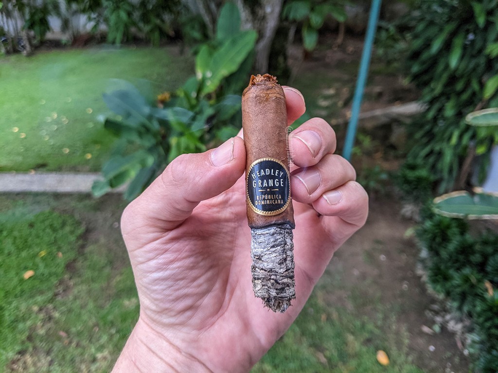 El segundo tercio del Headley Grange es ligeramente parecido al primero, principalmente en el sentido que tiene los mismos sabores, aunque en intensidades diferentes, destacando ese de mostaza entre los principales, aunque desecha esa sensación ligeramente picante que presentaba en el primer tercio. También aparecen notas de chocolate, que estaban muy sutiles y escasas en el primer tercio para merecer una mención, pero cuando son reforzadas por el carácter dulce del cigarro en este tercio, se sienten mucho mejor. Las notas secundarias son de paja, cuero, café y madera, que no llegan a superar esa intensidad. En términos técnicos se ha comportado a la altura, con un anillo de combustión bastante recto, buena ceniza y humo abundante.