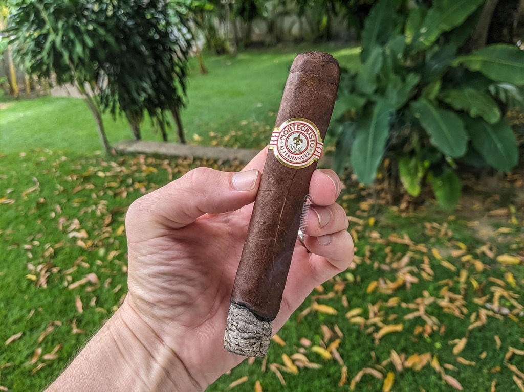 Las primeras impresiones del Montecristo Crafted by AJ Fernandez son abundantes de pimienta, tanto que no aprecio mucho el chocolate, pero también porque el chocolate es menos intenso de lo que en frío me había hecho esperar. También hay una nota cítrica de limón bastante notable, aunque esta no está presente durante todo el tercio y más o menos al momento de la imagen aparecen notas cárnicas como de la corteza de una carne al fuego que lo hacen más que atractivo, aunque confieso que con las notas suaves de chocolate no hacen la mejor combinación. Pese a su tamaño, el humo no es tan abundante como pensaría, pero quema bastante bien y la ceniza se siente bastante sólida.