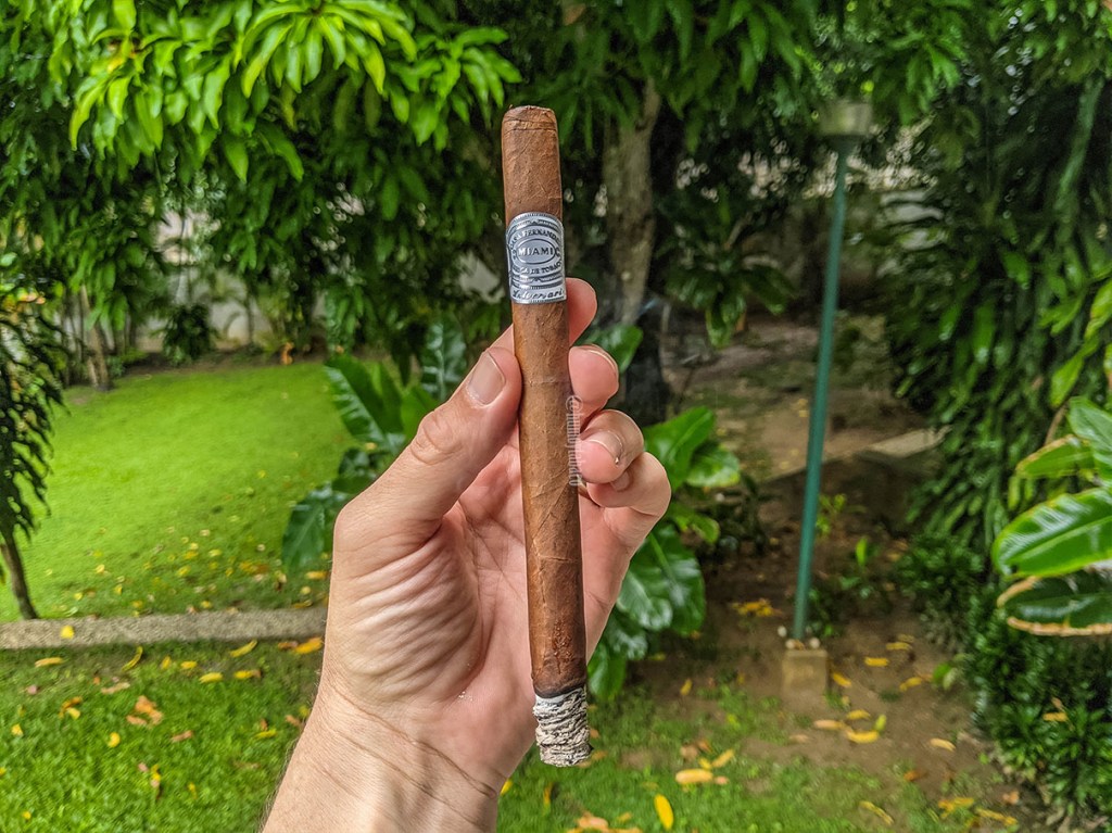 En el último tercio aparece el sabor de refresco de cola que sentí en los aromas en frío, acompañando notas picantes como de jengibre y ralladura de limón; esta última se presenta con mayor intensidad en el retrogusto, aunque en este último segmento también están presentes casi todos los sabores que han acompañado al cigarro desde el inicio, ya una hora y 50 minutos después de haberlo encendido. Requiere un ligero retoque cuando le quito la anilla, pero estoy seguro que de no haberlo hecho se hubiese corregido solo.