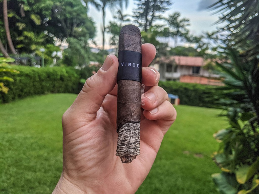 El último tercio de The Vince no fue tan agradable, principalmente porque la nicotina apareció con una intensidad bastante alta, también porque el tiro se hizo más difícil y creo que llegué a deformar un poco el cigarro por esa presión con los dientes e incluso porque la quemada fue mucho más lenta, algo que sucedió también porque los dos puntos anteriores no me invitaban a darle muchas más caladas. Tuve que darle un retoque finalizando el segundo tercio a fin de corregir la quemada que se rehusaba a arreglarse, pero los sabores de tierra volvieron a ocupar el papel principal del cigarro, mientras que la ralladura de naranja se volvió el más destacado de los secundarios, seguida de clavo y té negro. El retrogusto mantuvo su intensidad de pimienta y su imposibilidad de incluir más sabores, al tiempo que la intensidad se colocó en alta desde la mitad del cigarro y se mantuvo ahí hasta el final. En total, dos horas y 10 minutos de fumada, que en mi opinión, luego de una hora y 40 minutos había dado todo lo que iba a dar.