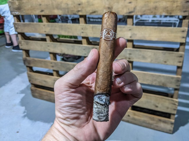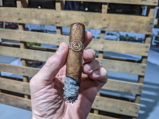 En el último tercio los sabores de pimienta desisten un poco su abundancia, haciendo del Series 3000 Natural un cigarro que incluye sabores a pimienta y no uno que es dominado por la pimienta. Incluso, los sabores a chocolate también se sienten un poco más sutiles y los de café algo más intensos, haciendo que estos tres estén casi al mismo nivel y que esa combinación funcione muy bien. Los sabores de tierra mojada ya desaparecieron por completo y la intensidad se mantiene en media, en donde ha estado desde el principio, pero hacia el final de la fumada sí aumentó un poquito. En total, me tomó una hora y 40 minutos terminar con este Padron Series 3000 Natural.