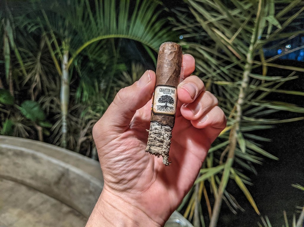 La hoja Broadleaf en la capa no es algo muy común, principalmente por dos razones: la primera es que su sabor suele dominar casi toda la fumada, por lo que su uso debe ser cuidadoso. La segunda es que visualmente es bastante fea y quienes quieren mantener sus cigarros más elegantes, no la usan o la deben seleccionar muy cuidadosamente. Pero el Charter Oak Broadleaf es un cigarro que cuesta menos de $6 y con ese precio no puedes esperar un producto elegante, pero los cigarros con esta capa (incluso si es en capote) siempre van a tener sabores intensos. El hecho que por ese precio puedas tener un cigarro de esta intensidad, estos sabores y esta calidad de construcción ya debería ser suficiente razón para adquirirlo en grandes cantidades. Eso sí, no en Grande.