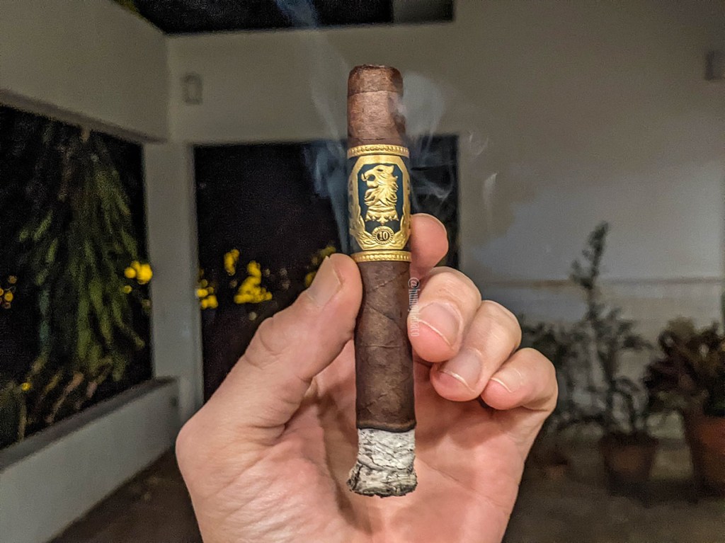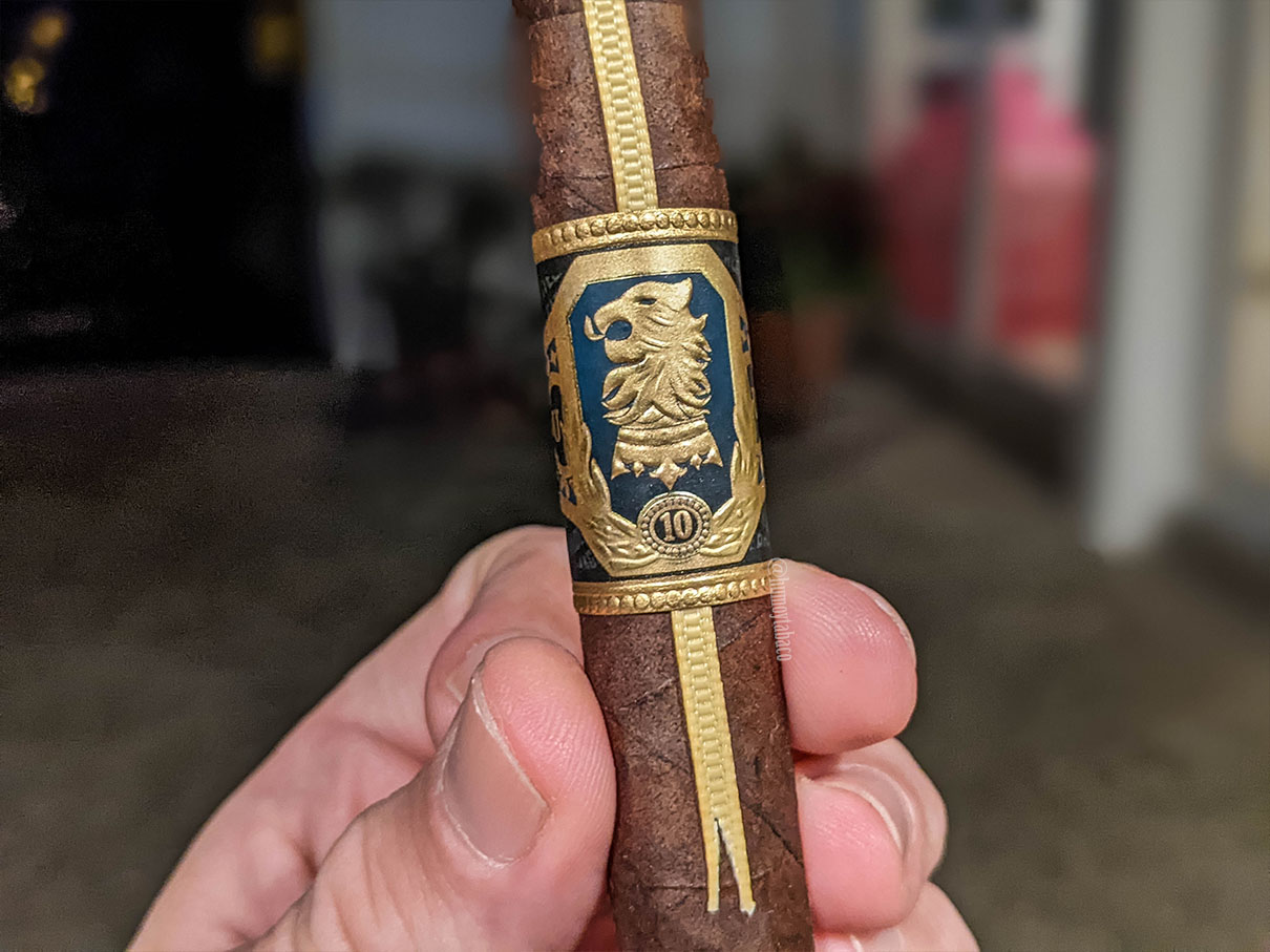 El nuevo cigarro es bastante distinto al original por la adición de una cinta dorada vertical que debe ser quitada antes de encender el cigarro y una anilla en el pie, además que la anilla principal tiene el número 10 debajo de la gárgola. Bajo todos estos artilugios se encuentra una capa intensamente oleosa, áspera y muy oscura. Se siente como un cigarro sólido y hasta duro, pero no algo que preocupe o que indique problemas de tiro. Esta capa tiene aromas a tierra, establo, pimienta y un toque de eucalipto, mientras que en el pie se aprecia cuero, café, pan y más tierra. Finalmente, luego de picarlo con la doble hojilla, la calada en frío permite apreciar nibs de cacao, tierra, paja, almendras y pasas.