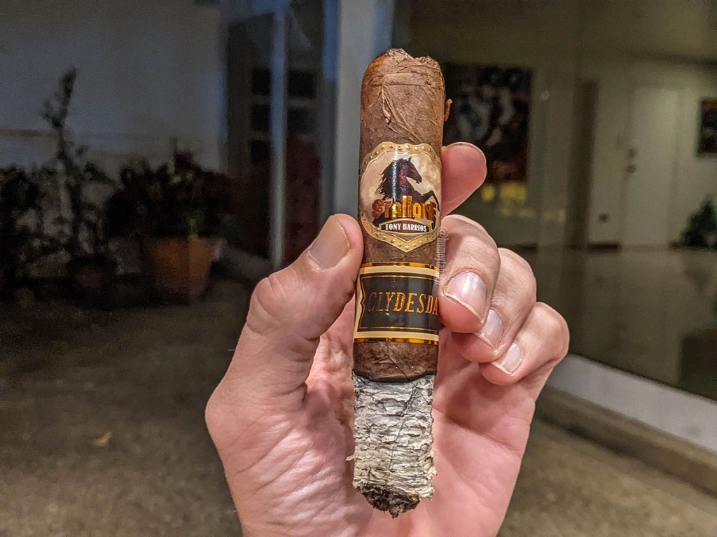 Es difícil apartar dos horas para fumar, y tres horas mucho más. Comencé a fumar el Clydesdale cuando era un poco más de las 9 de la noche, ya sabiendo que me iba a desvelar, pero realmente los aromas en frío me invitaron a probar el cigarro. Lo que más podía destacar del Clydesdale antes de fumarlo es que tiene muchas cosas que no me gustan de un cigarro: mide más de 6 pulgadas, tiene un cepo de 60 y va a ser una fumada larguísima. Pero luego de fumarlo pienso que tiene el largo y el cepo perfecto para lo que es. Que 3 horas es el tiempo perfecto para fumarlo, y que quiero volver a hacerlo pronto. Para todos mis peros con este cigarro, una vez encendido es sumamente complejo, sabroso y tiene todo lo que me gusta en un cigarro en cuanto a sabores. Si para llegar a ellos hay que invertir todo esto. Sí que lo vale.