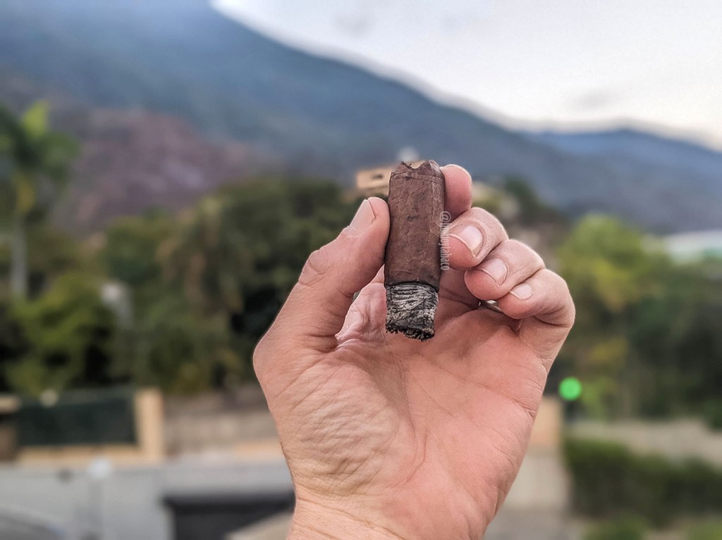 En el último tercio el Prensado parece perder un poco de la potencia que venía construyendo, por lo que me parece que fue en el segundo tercio donde realmente se destacó, pero sería tonto decir que no va bien por eso… solo no va tan bien como esperaba que evolucionara. Los sabores son más o menos los mismos del primer tercio, pero las almendras tostadas se sienten un poco más quemadas y, por ende, un poco más amargas, pero afortunadamente ya no son el sabor primario; este es el de madera y este tipo de sabores no es dado a ser dulce, así que en general el cigarro pierde esa propiedad también. En construcción, muy bien, con un humo constante y denso en cada calada, sin requerir retoques y un anillo de combustión que tiende a corregirse solo cuando se desvía, que no es muy a menudo. Una hora y 15 minutos de fumada creo que estuvieron bien para el cigarro, que es cuando lo dejo de lado.