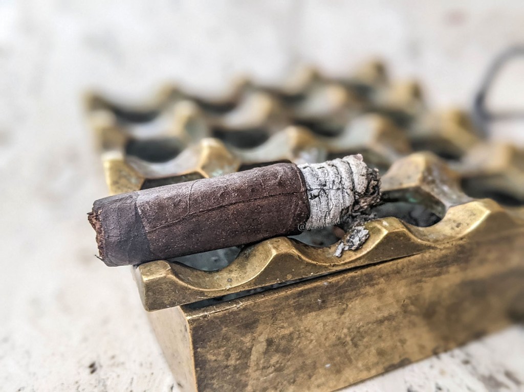 En el último tercio el sabor principal es el de café, pero sigue acompañado del resto de los sabores, aunque son los cítricos y el chocolate los que han perdido terreno en ese sentido. El retrogusto mantiene las galletas danesas que aparecieron en el tercio anterior, pero todo con una complejidad y una riqueza que casi siento que el robusto se me va a quedar corto. No obstante, hay cigarros que funcionan muy bien en robusto y no tanto en toro, así que por lo pronto, me mantengo igualmente contento con esta experiencia y por el hecho que es un cigarro que regularmente está en oferta, así que con gusto y regularidad lo compraré. Me duró una hora y 15 minutos, que no es mucho, pero es un cigarro que dura lo que tiene que durar y nunca se hace cansón. No hablé de su construcción, quizá porque al igual que una buena banda sonora en una película, acompañó lo que fue una fumada perfecta, con humo rico, abundante y una quemada ideal.