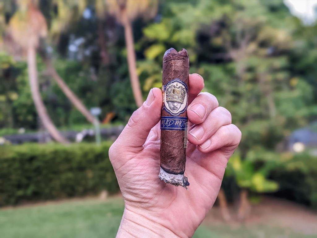 Yo tengo varios temas con los nombres de los cigarros y, en gran parte, estoy muy de acuerdo que no se deben usar nombres de personajes infantiles para los cigarros. Tampoco me gusta el uso de nombres que estén relacionados con drogas y creo que es debatible el tema de usar nombres relacionados con comidas. Pero el uso de groserías para nombrar un cigarro está entre los que no acepto y quizá fuese esa una de las razones por las que había pasado tanto tiempo antes de probar este cigarro. Aunque la grosería no está escrita, la connotación es obvia. Además que originalmente el cigarro se llamaba Mad MF y ahora es Mad Mofo. La experiencia con el cigarro más allá de su nombre fue muy positiva, con un primero y segundo tercios excelentes, pero un último tercio aburrido. No obstante, el Long Live the King Mad Mofo se trata de una experiencia balanceada con una cantidad respetable de densidad y complejidad, al menos en los dos primeros tercios. Por otras reseñas que he leído, el último tercio es una lotería.
