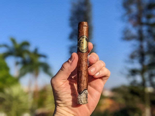 El Midnight Express enciende bastante bien, pero no mantiene un anillo de combustión muy uniforme, en ningún momento, tal como el The Last Tsar. La ceniza se sostiene bien y eso se agradece, pero el hecho de tener que darle algunos retoques no ayuda mucho a la quemada y esto sucedió durante toda la fumada. Los sabores comienzan dulces, pero también incluyen roble, sal, pimienta y cáscara de naranja. A mediados del primer tercio, más o menos para cuando hice la foto, los sabores dulces desaparecieron, dejando que el perfil principal de los sabores fuese de madera, pimienta blanca, crema y canela. La fortaleza es media y la intensidad de los sabores es media-alta, lo que me lleva a disfrutar de este cigarro y el buen tiro que tiene.